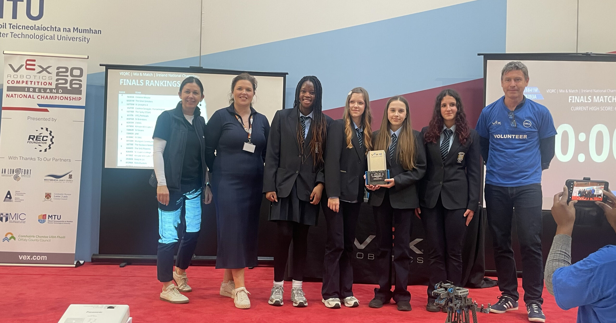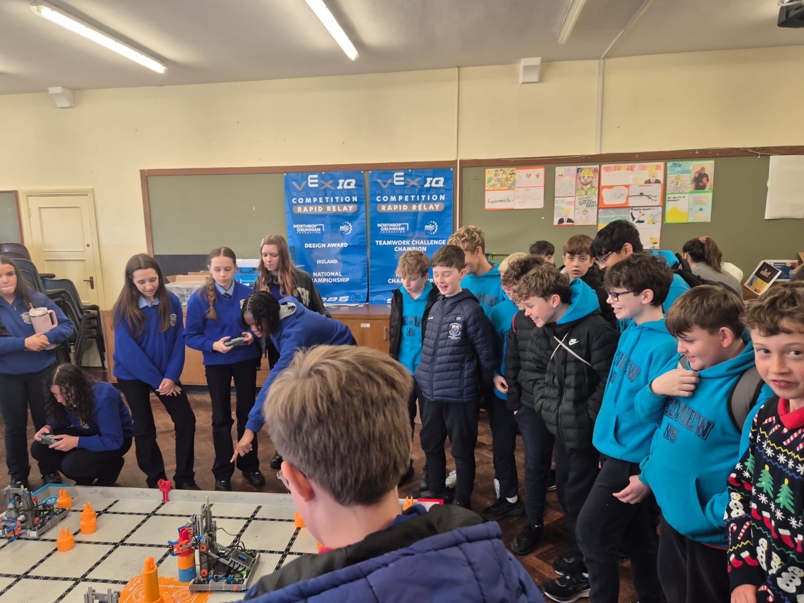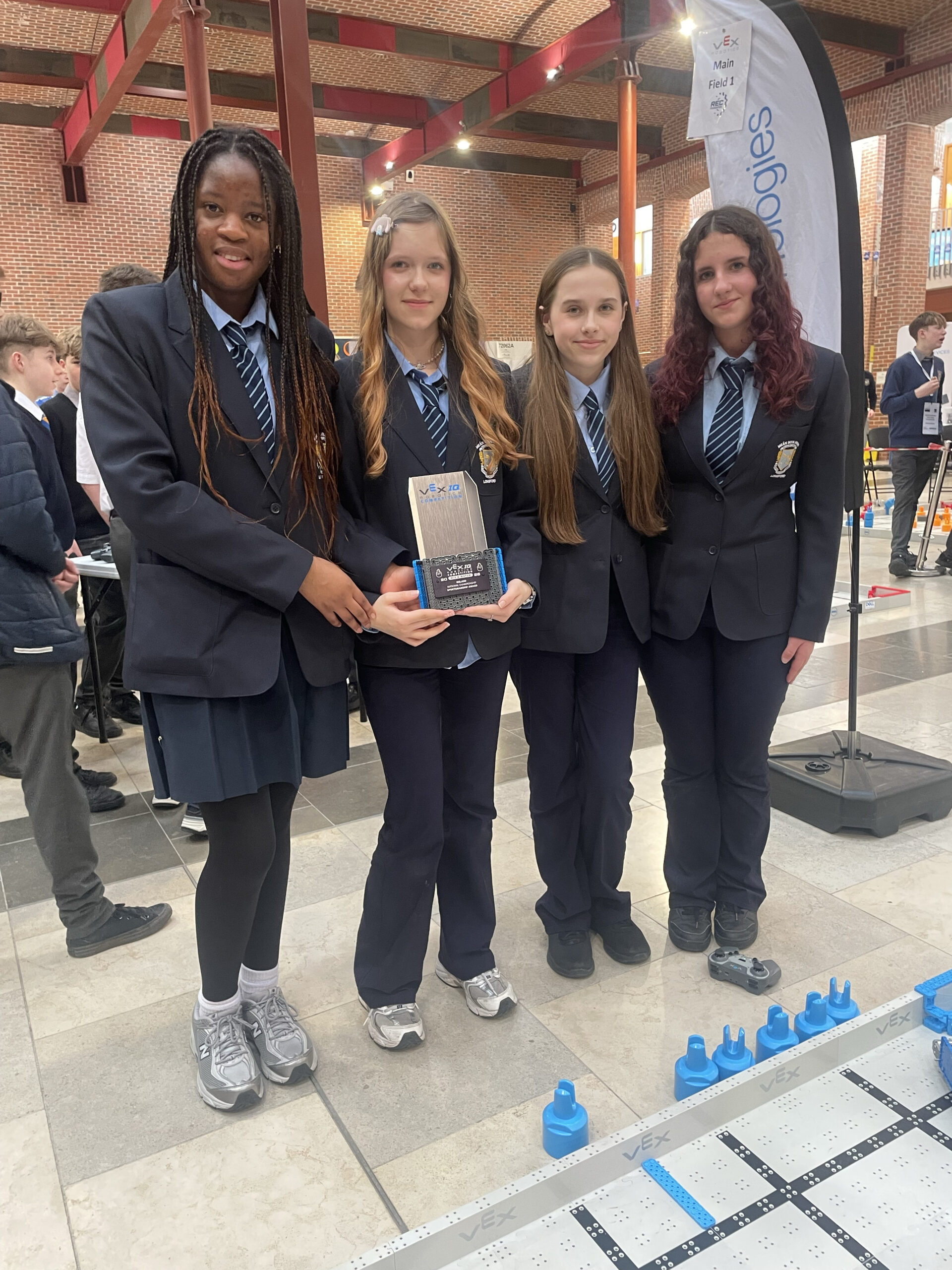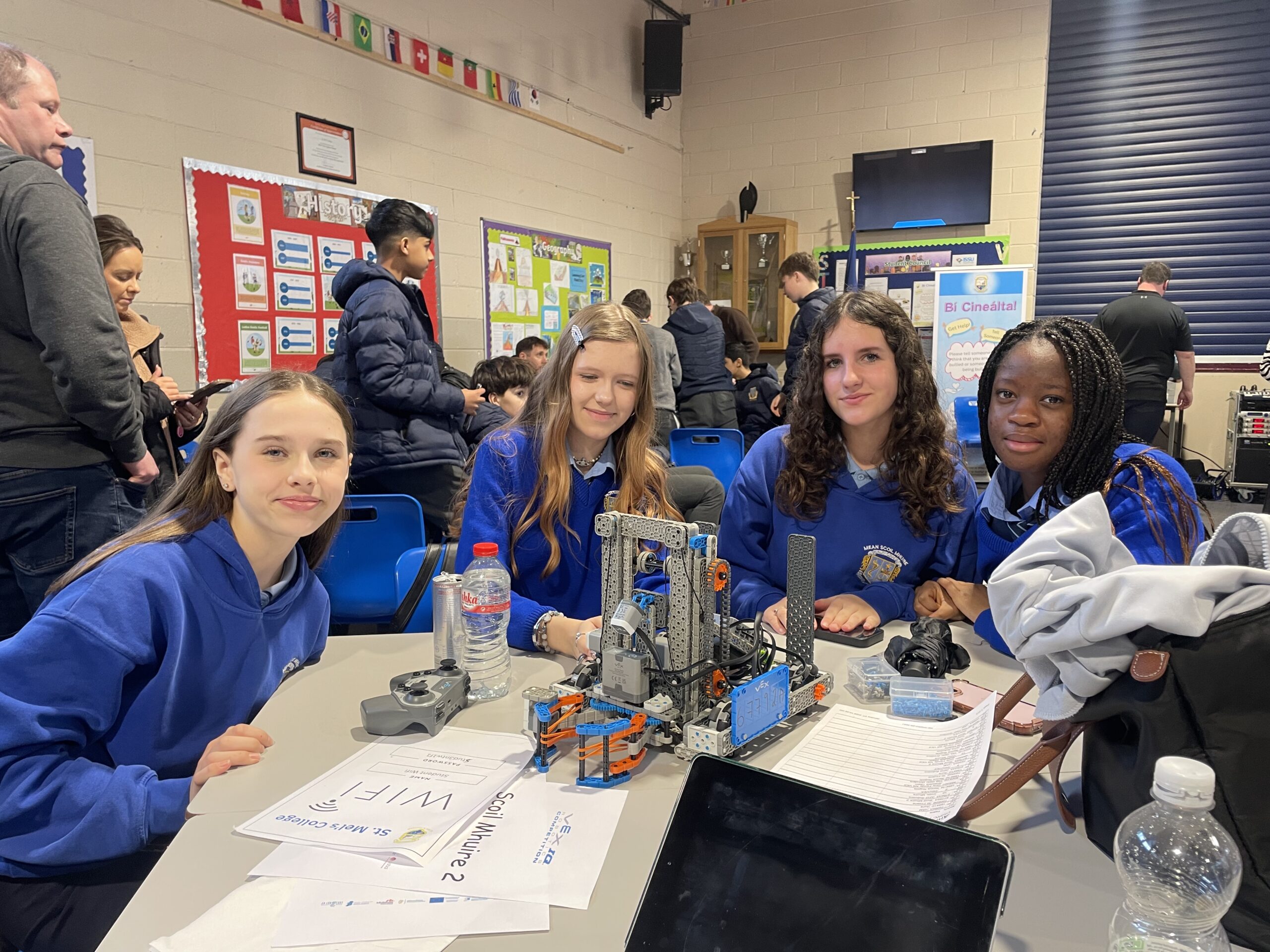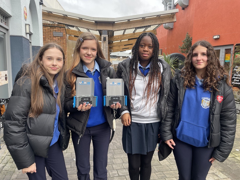 The Robotics Club has proudly represented Meán Scoil Mhuire at a number of regional and national competitions. Our teams have achieved great success, winning several awards at local competitions and demonstrating excellent teamwork and innovation. Students have also competed at the VEX IQ National Finals in MTU Cork, where they were recognised with a Sportsmanship Award for their positive attitude and support for fellow competitors.