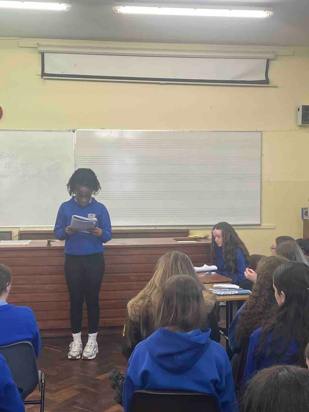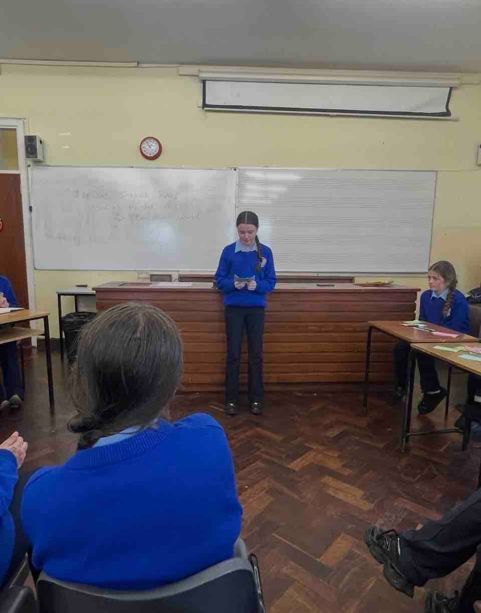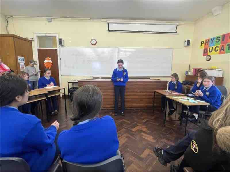 Today the 1st yr English classes held a debate. A team from each class was put forward, having been selected through a first round process. The motion hotly debated today was: Ireland should ban social media access for children under 16. All teams performed well with 1B defeating the motion and 1C carrying the motion. Well done to all those that took part and we look forward to the final round of this competition next term, when 1B will face 1C for the title of 1st yr Debate Team 2026. Thank you to the first yr English teachers for preparing the students and to our adjudicator Ms Keogh.