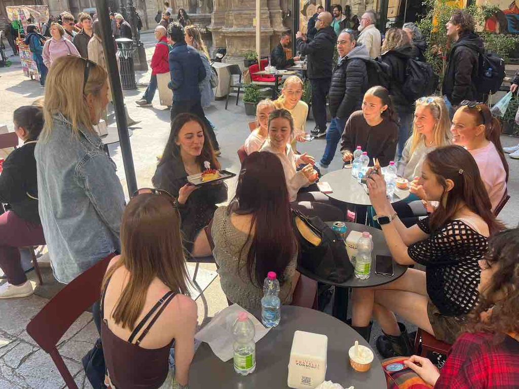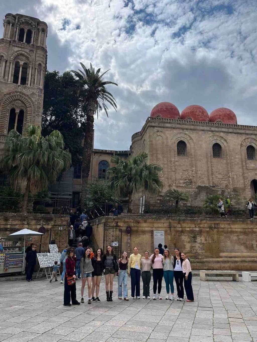 Day 2 in Palermo kicked off with a visit to the Church of the Gesu of Cassa Professa, famed for its paintings and architecture. After this we went to the Church of Saint Mary dell Ammiraglio, a Norman church, to look at its baroque architecture and Byzantine mosaic and then onto Chiesa di San Cataldo. Thankfully we have Mr Regan on tour to provide the history of Norman invasion and how, many churches students visit, will have Christian and Islamic influence and why. The girls got to sample local Arancine in the ‘ke Palle’, renowned for its authentic Sicilian cuisine.