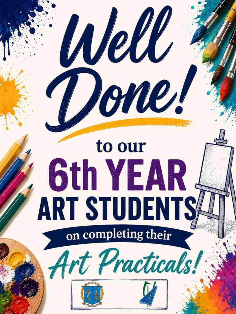 Well done to our LC Art students who completed their Art Practical Exams on Wednesday & Thursday!